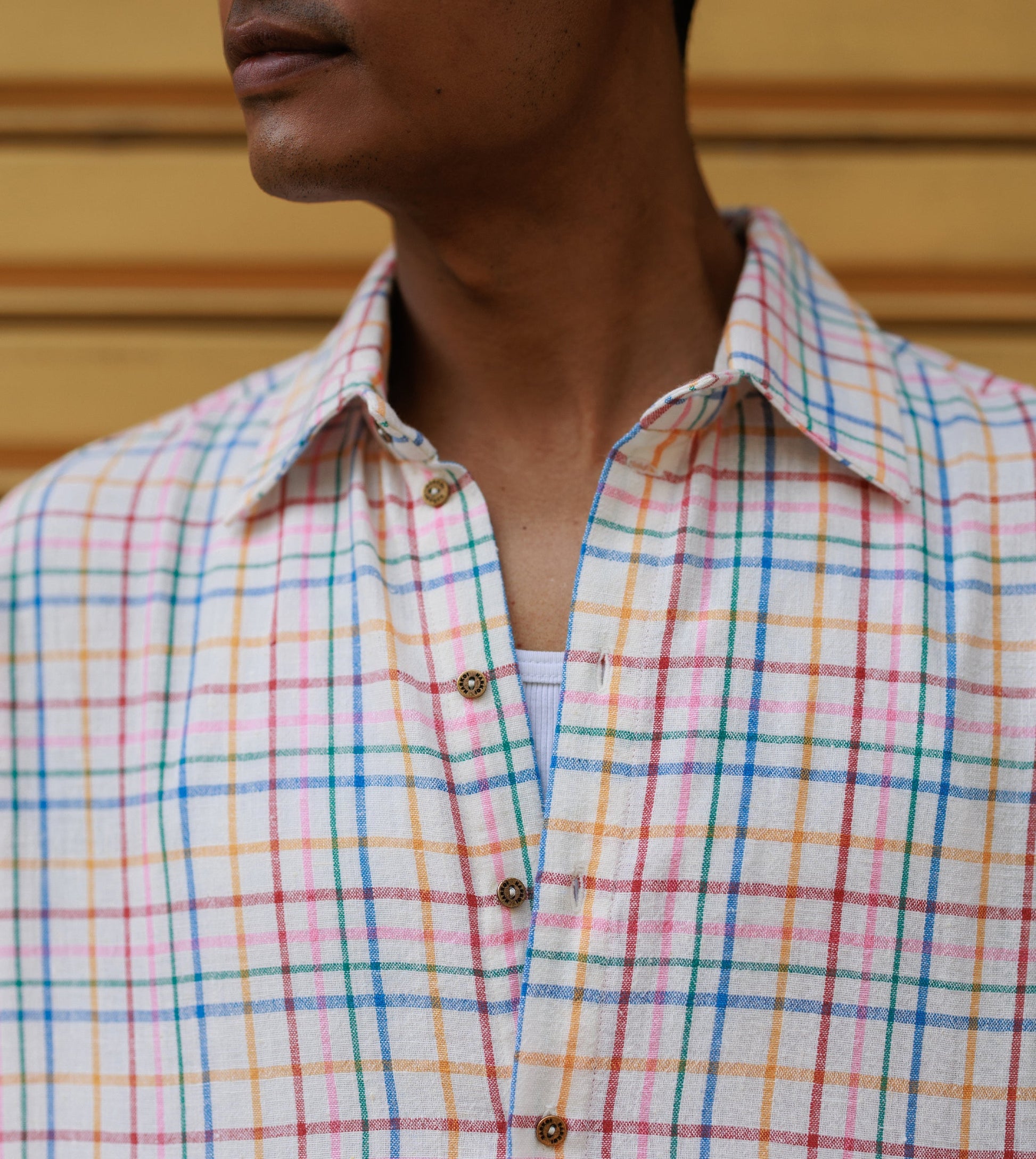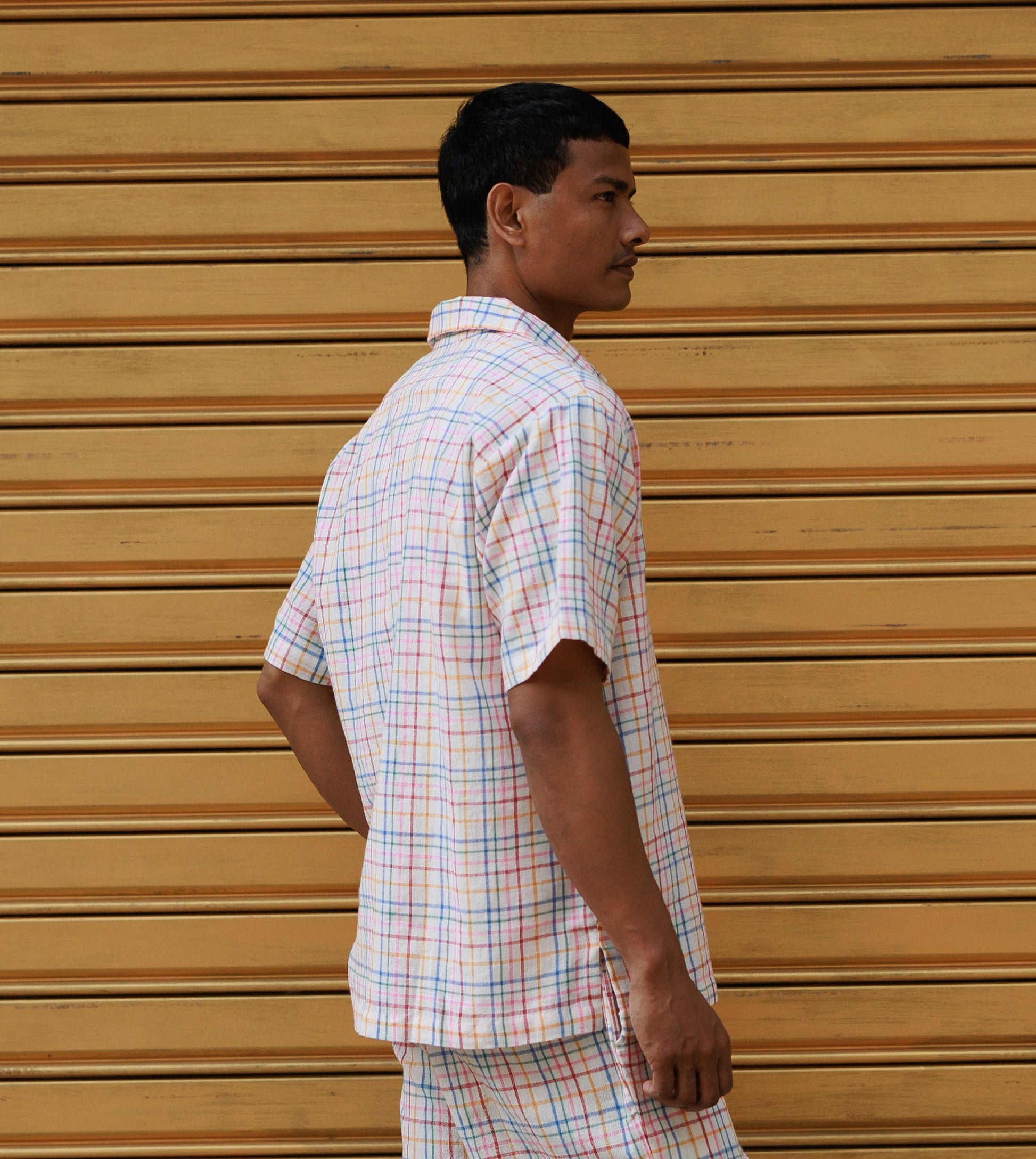Men’s casual shirt made from hand woven kala cotton fabric. Best worn untucked for an easy everyday look. These can be worn in combination with a matching pair of shorts to create a coordinated look or be worn as separates.